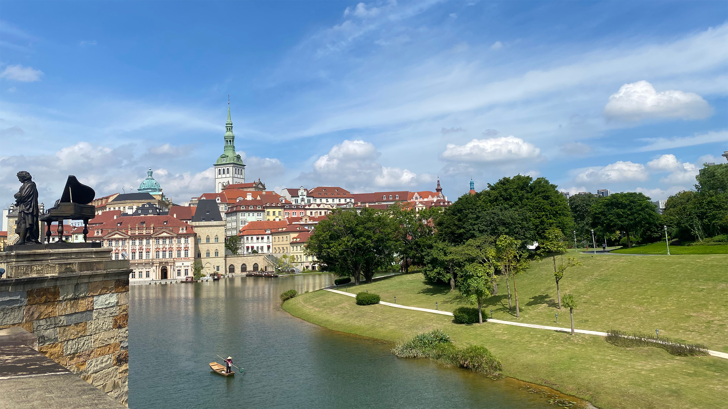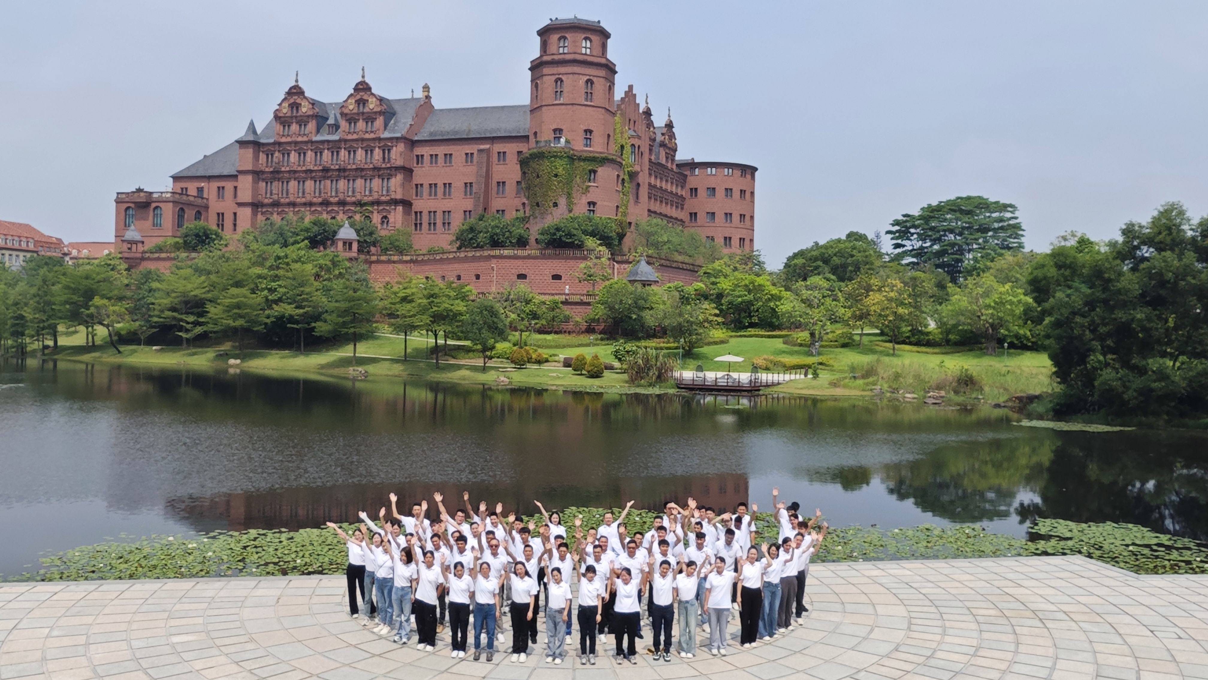 清晨的松山湖,薄霧輕籠,猶如一幅水墨初染的歐式長卷。小火車緩緩穿行,掠過尖頂城堡、靜泊湖灣與現代研發區,仿佛穿梭在夢境與未來之間。華宏人漫步其間,不只是參觀,更是在一磚一景中,讀懂科技背后的人文敘事——于建筑與自然、科技與人文之間,感受一家企業如何將人文情懷,寫進建筑、自然與每一次創新之中。